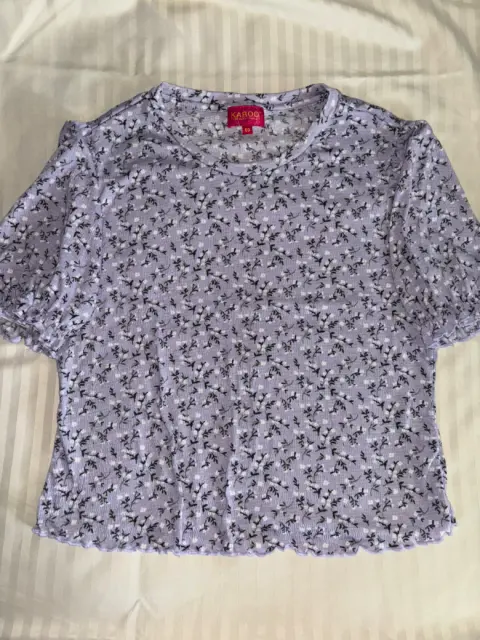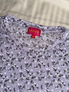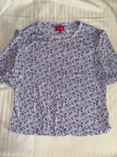 Blusa floreada en color morado con mangas estilo farol talla XL