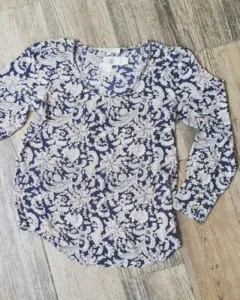 Blusa azul marino con tonos rosas y cafe, excelente para laborar o de forma casual