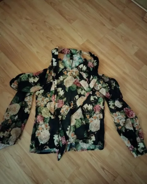 Blusa floreada con olanes. Blusa bonita, descubierta de hombros y con olanes, floreada