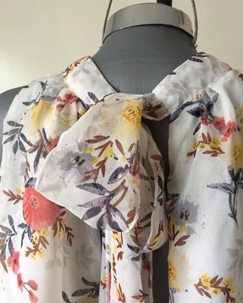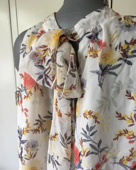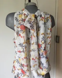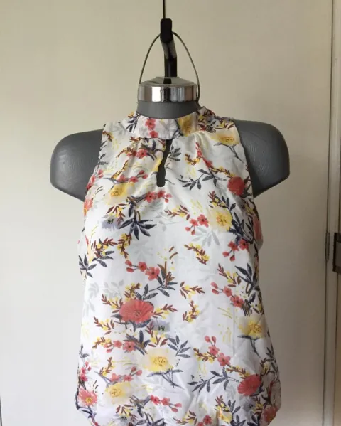 Blusa muy fresca con estampado floral, escote en espalda muy sexi, moño en nuca . Nueva con etiqueta en buen estado