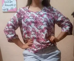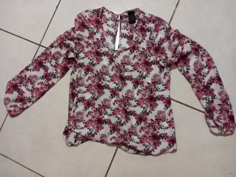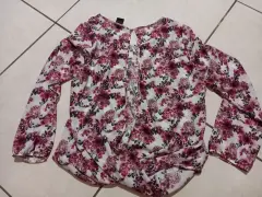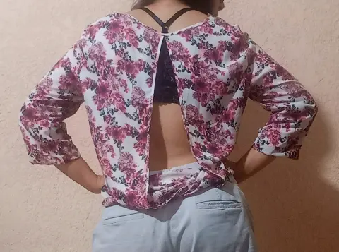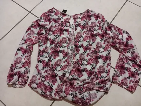 Blusa floreada rosa. Linda blusa se ha puesto 1 sola vezEs de manga larga, yo me la acomode para la modelarla tiene un bonito escote por la espaldaTalla. 7 (M)