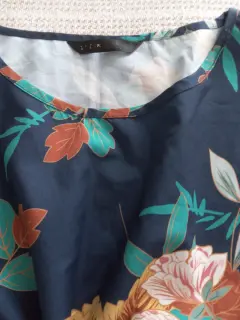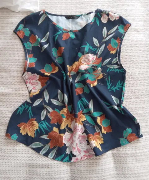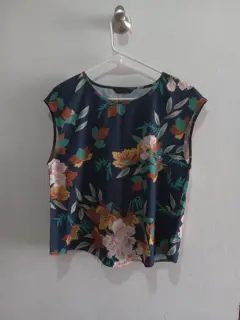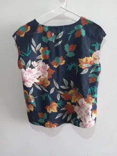 Blusa floreada sin mangas, con fondo azul.Se ve muy linda puesta, es talla M y la tela es muy fresca.