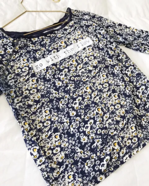 Blusa Stradivarius floreada azul marino, es talla mediana, la tela estira. Está tal cual las fotos