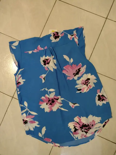 Bonita blusa floreadas color azul, nueva con etiqueta, talla CH, tela transpirable