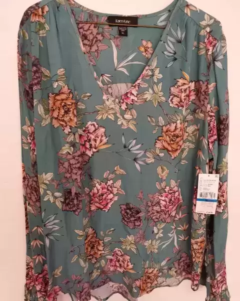 Blusa floreado fondo color menta. Blusa con flores color menta , manga larga que termina con un pequeño olan