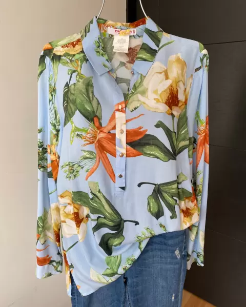 Blusa flores cklass. Hermosa blusa azul con flores esta divina