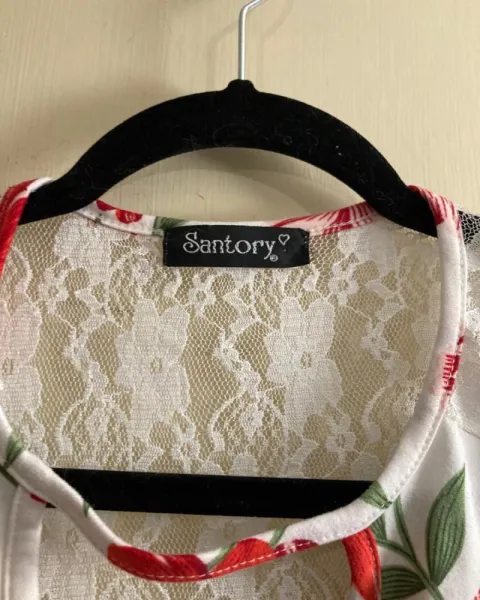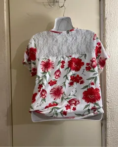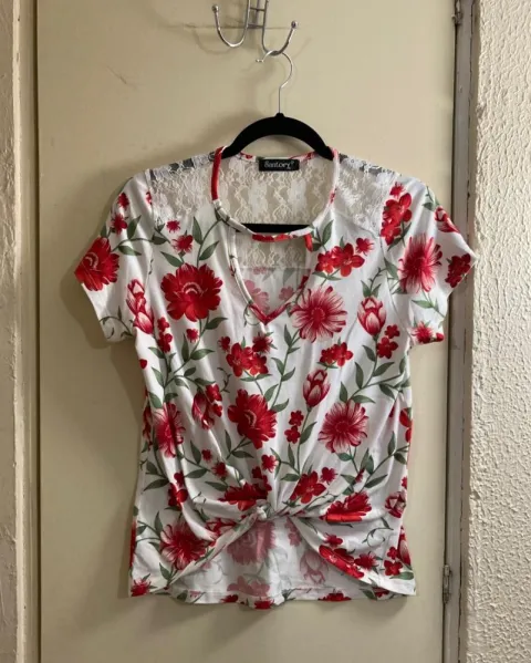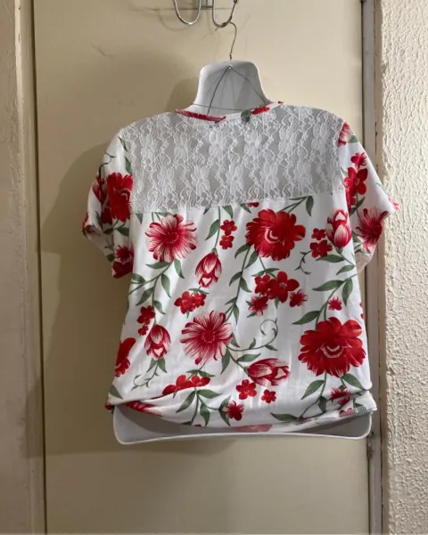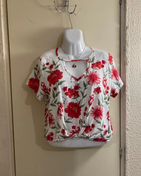 Blusa flores rojas. Blusa tela estira, blanca con estampado de flores rojas, se envía cubrebocas a juego