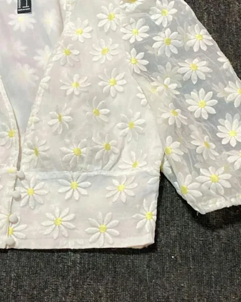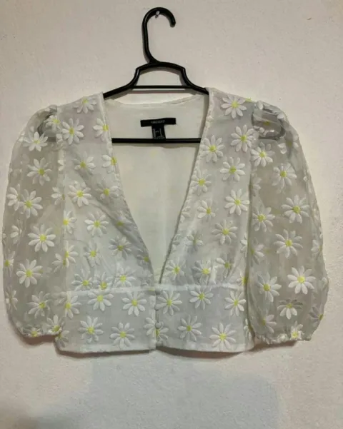 Blusa Forever 21. Blusa con mangas bombachas, botones para abrochar