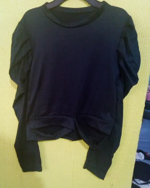 Blusa negra manga larga con unas aberturas enfrente en la parte baja , hermosa 👌