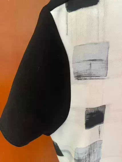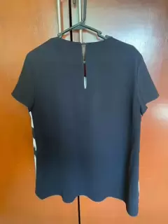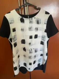 Blusa manga corta estampado cuadros por el frente, negra al reverso, talla M
