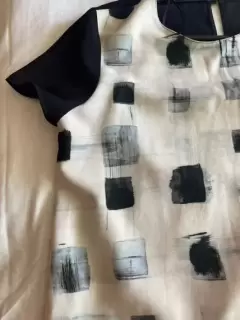 Blusa formal. Blusa manga corta estampado cuadros por el frente, negra al reverso, talla M