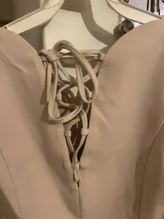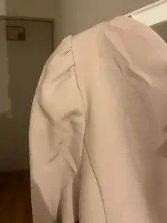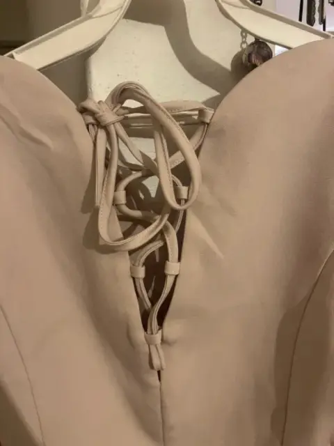 Blusa formal beige nunca usada tiene red en la parte trasera . En la parte delantera tiene cuello en V . Está preciosa para todo tipo de ocasión