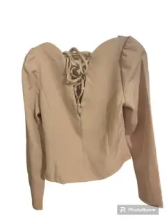 Blusa formal beige Milk & Honey. Blusa formal beige nunca usada tiene red en la parte trasera . En la parte delantera tiene cuello en V . Está preciosa para todo tipo de ocasión