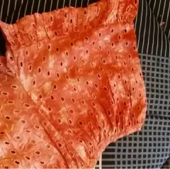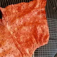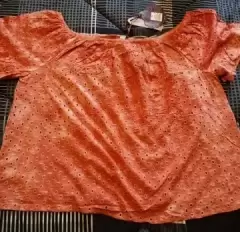 Hermosa blusa fresca y casual color mamey. de material algodón y rayon. Resorte en escote y manga en terminado tipo olán