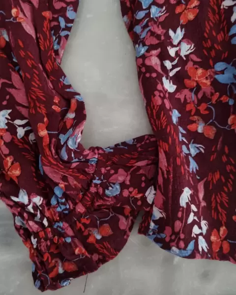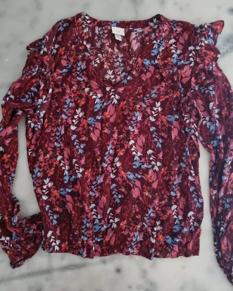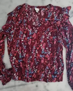 Blusa fresca color vino estampado floreado. Hermosa y ligera blusa con estampado floreado. En excelente estado.