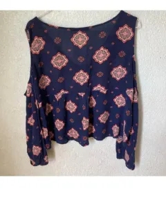 Blusa fresca de hombros descubiertos. Blusa Vertiche con hombros descubiertos talla L, las mangas son largas y la tela es fresca, es blusa corta, es de uso