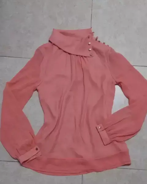 Blusa con detalles muy padres en el cuelloTela super fresca; manga larga transparente Talla 26 ( da a mediana) Color rosa melocotón