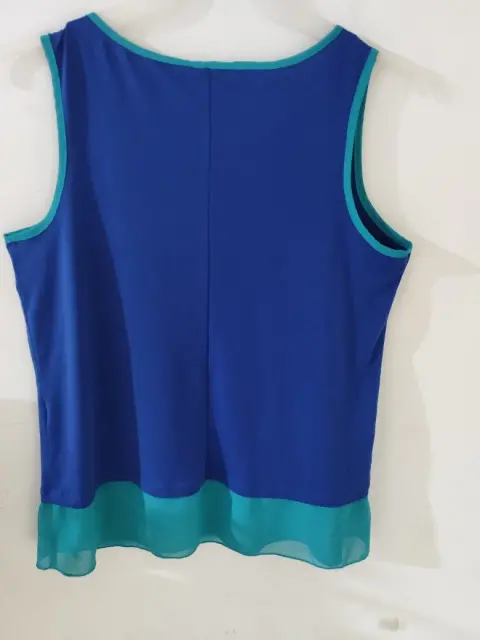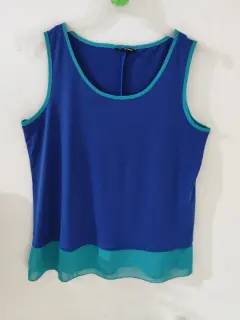 Blusa básica sin mangasPara usar abajo del blazer o solaLa tela color azul rey estiraLa tela verde aqua es rígida de gasa, solo le da el toque de color
