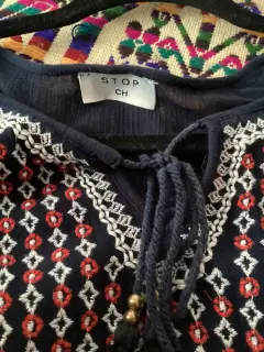 Blusa Fresca Talla S Stop. Blusa Fresca Talla S StopPreciosa blusa azul marino con bordado en pecho y mangas. Esta súper linda y fresca. El color es azul intenso, aunque en las fotos no se aprecia bien. Mangas 3/4. Poco uso y en perfecto estado.