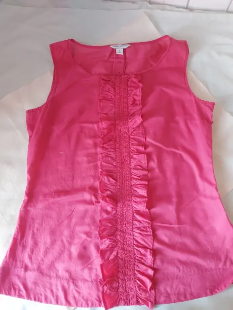 Blusa fucsia con olanes. BANANA REPUBLIC, seminueva, talla 0, cierre al costado que facilita su uso, tela fresca excelente para tiempo caluroso