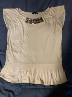 Blusa color beige, sin etiqueta, muy ligera y con pedrería al frente