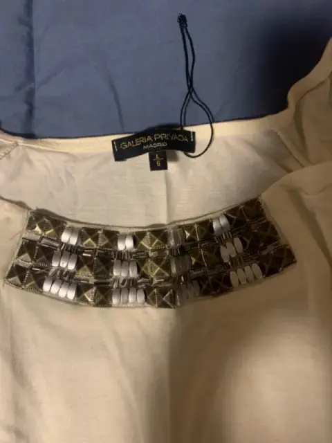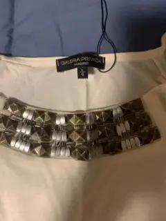 Blusa galería privada. Blusa color beige, sin etiqueta, muy ligera y con pedrería al frente