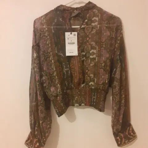 Blusa transparente gasa hilos brillantes súper Bonita y moderna talla M nueva ZARA