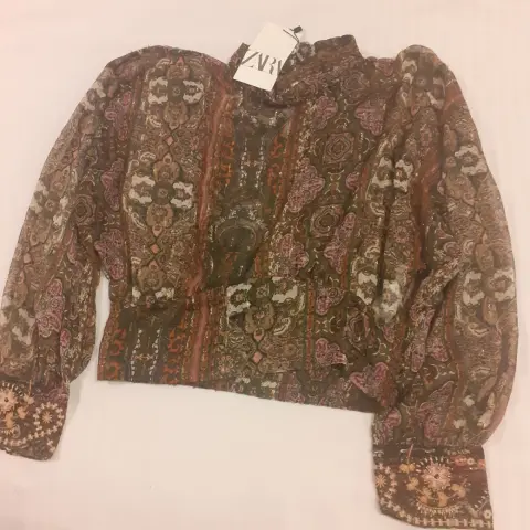 Blusa gasa transparente ZARA. Blusa transparente gasa hilos brillantes súper Bonita y moderna talla M nueva ZARA