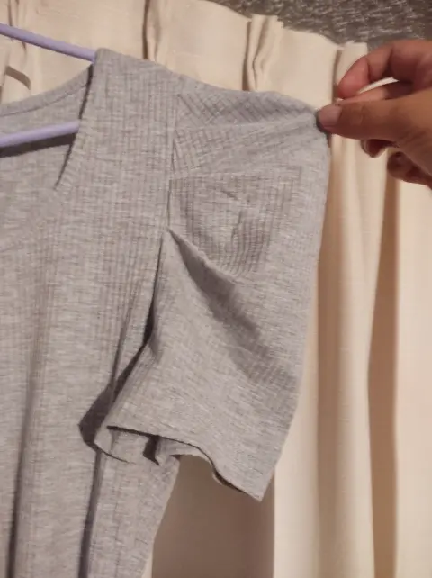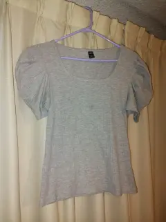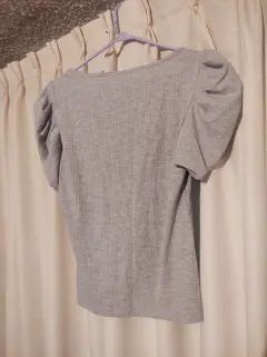 Blusita color gris, hombro con globo. Talla M. Queda hermosa y está nueva