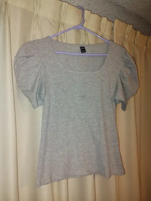 Blusa gris. Blusita color gris, hombro con globo. Talla M. Queda hermosa y está nueva