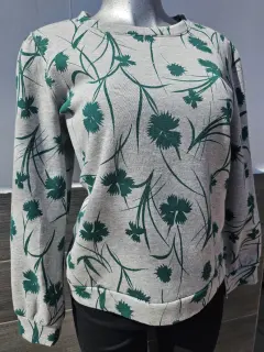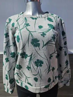 Blusa gris con estampados verdes manga larga. Blusa gris con estampados verdes manga larga, afelpada por dentro, talla grande (L)