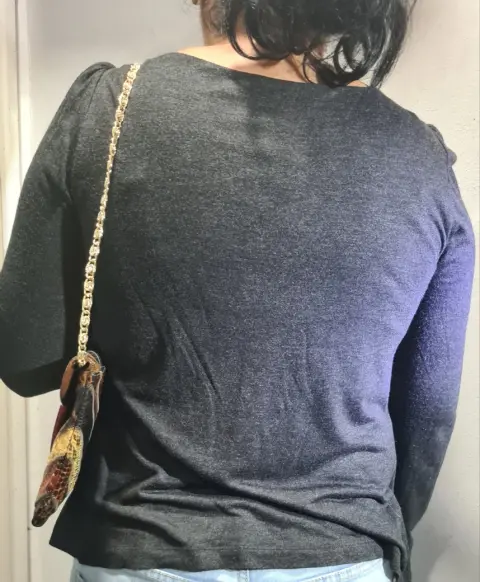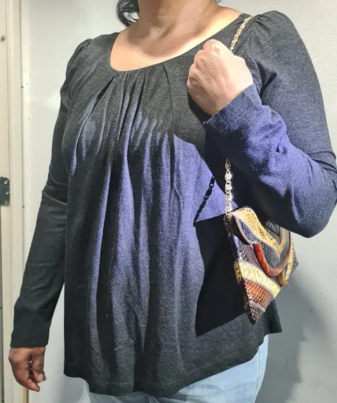 Blusa talla 42, si da a una talla grande porque es tela elástica, no tiene detalles, solo se uso 1 ocasión, tela muy suave y cómoda, la manga mide 63 cm de hombro a puño
