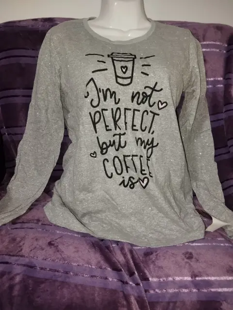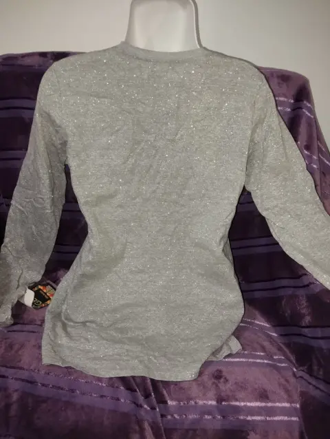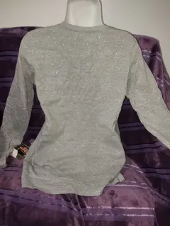 Blusa gris manga larga. Bonita blusa básica color gris con detalles de brillos súper mega linda, cuenta con estampado en la parte frontal, tela fresca (no pica), ideal para un outfit casual, marcada como talla G, medidas en las últimas fotos ❤️🥰❤️🥰❤️🥰❤️
