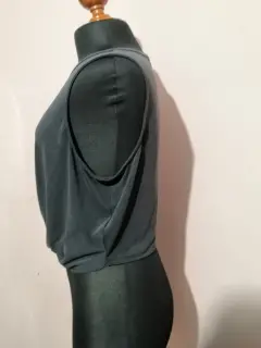 Blusa en tono gris oscuro el nudo al frente viene como cocido la tela es una mezcla de licra y algodón estira bastante da entre talla 34-36