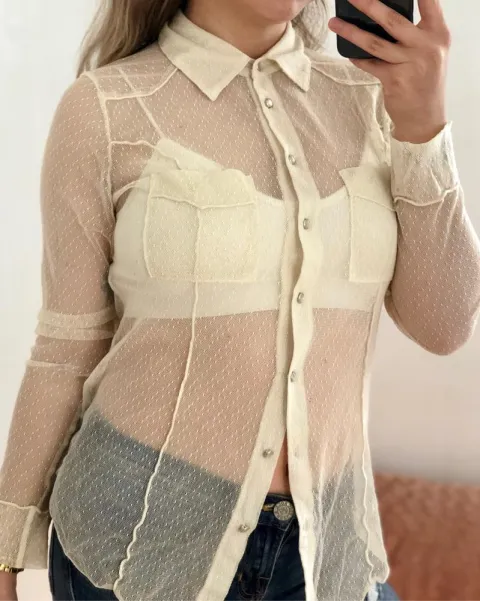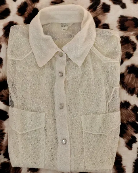 Blusa Guess. Esta hermosa, etiqueta dice S, puede quedar XS e incluso un M. La tela es como de encaje 💕