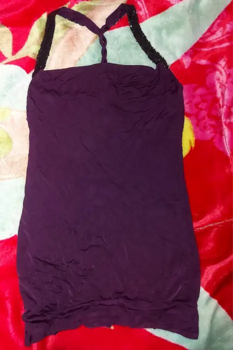 Es unitalla, fresca y cómoda, le da mucha vista la pedrería negra que tiene.