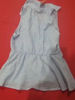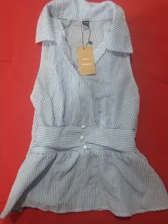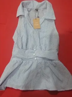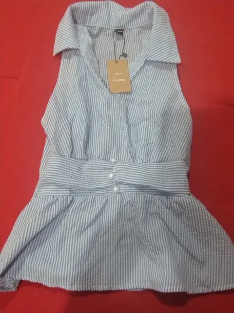 Blusa con estilo halter y la cintura en corte peplum de rayas azul con blanco ,nueva con etiqueta