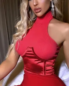 Blusa halter roja. Increíble top halter, que marca la parte del busto súper sexy y pegado.