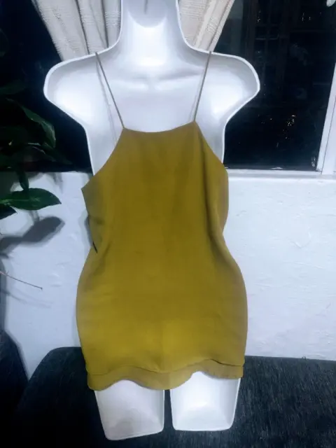 Blusa de tirantes cuello V con volantes, marca H&M talla S color verde