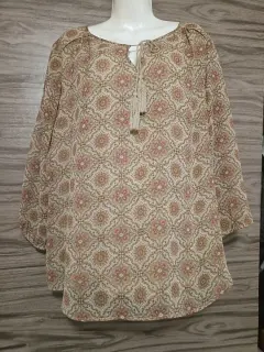 Blusa holgada de la parte es ligeramente más larga estira un poco.Las medidas son de hombro a hombro 43 cm, de axila a axila 63cm y de largo 61cm