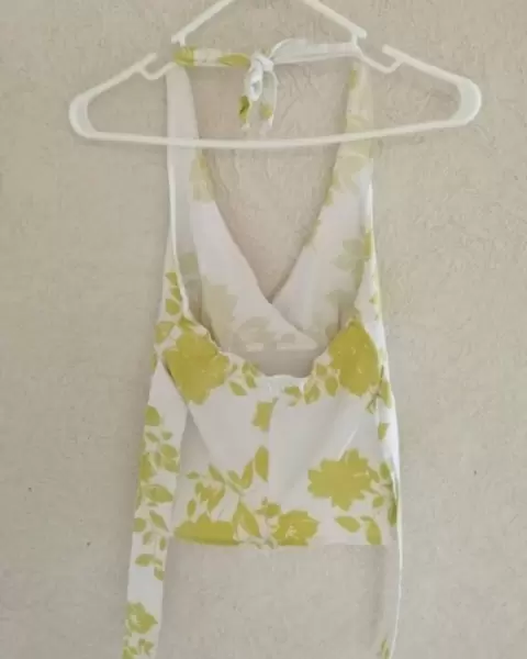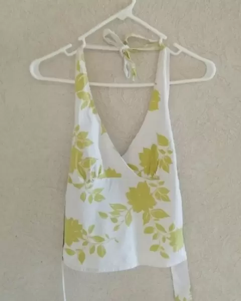 Blusa holter de hojas LOB. Lindisima blusa tipo holter, espalda y hombros descubiertos, ideal para verano 😍. Es talla chica, tal vez queda a una mediana, tiene resorte en la espalda y cierre lateral