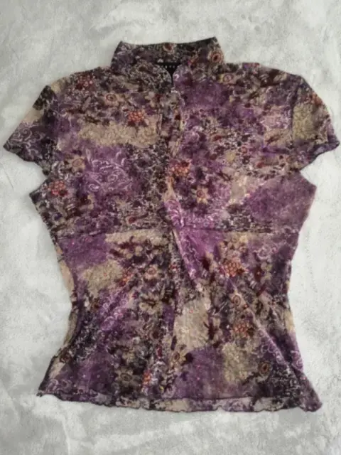 Blusa Ivonne cuello Mao. Blusa Ivonne talla M transparente tonos en lila, cuello tipo Mao