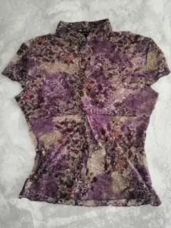 Blusa Ivonne talla M transparente tonos en lila, cuello tipo Mao