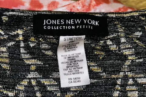Blusa- JONES NEW YORK. •Perteneció a la colección petite•Talla PM•Manga larga •97% Poliéster •3% Elastano •Está creada con una tonalidad verde y unos destellos dorados,creando su propio brillo y así mismo resalta cada rama