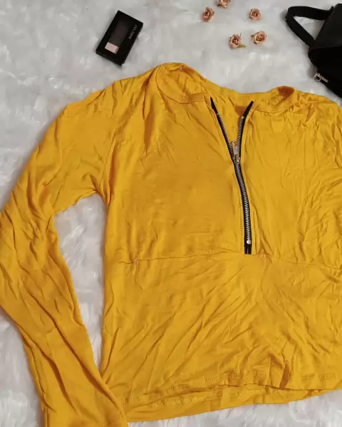 Blusa amarilla manga larga con sierre al frente muy bonita fresca y ligera