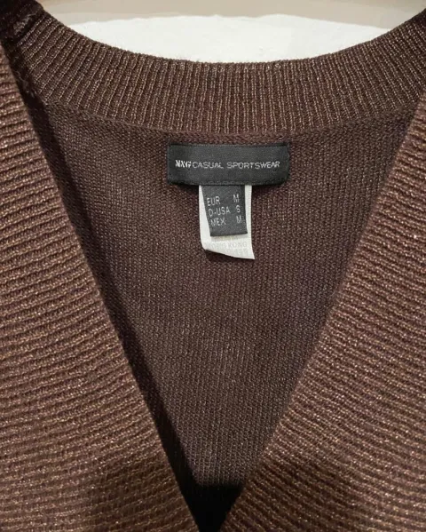 Blusa larga Mango es color cobre con finos hilos metálicos , cuello V , manga corta ,