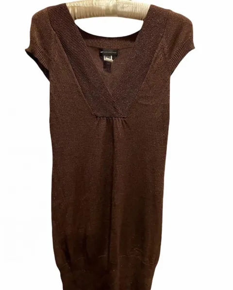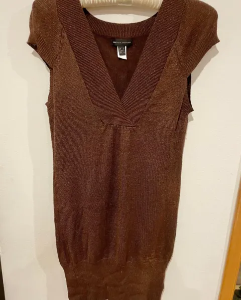 Blusa larga Mango. Blusa larga Mango es color cobre con finos hilos metálicos , cuello V , manga corta ,
