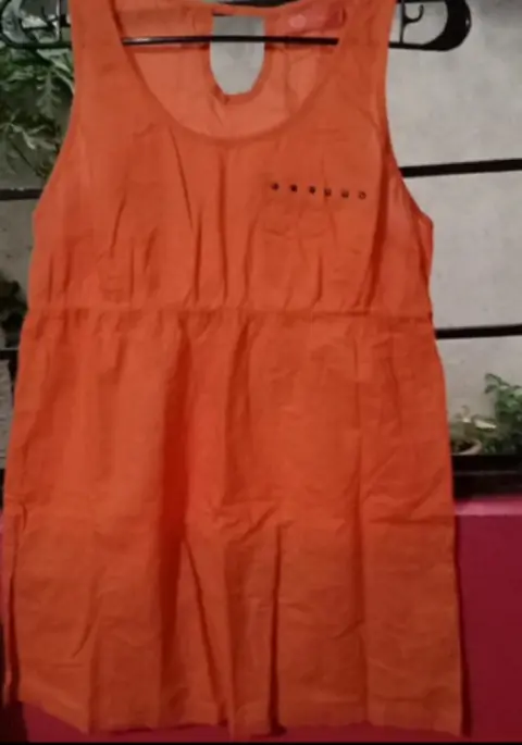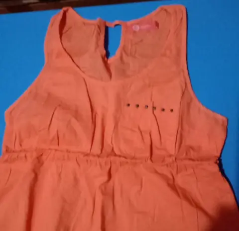 Blusa larga sin mangas, en perfecto estado. Debajo del busto llevaba una cinta de adorno pero ya no cuento con esa cinta, por lo que en la blusa trae dos costuras para colocar las cuales no se notan.
