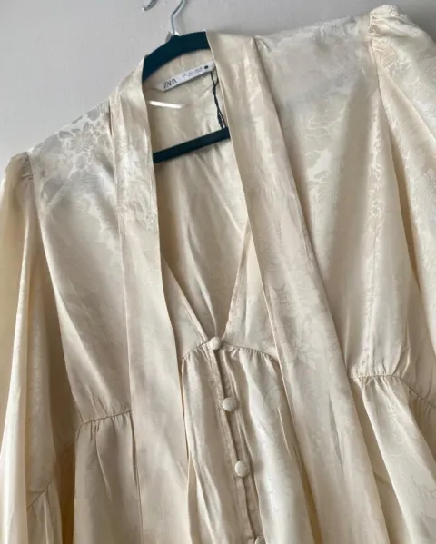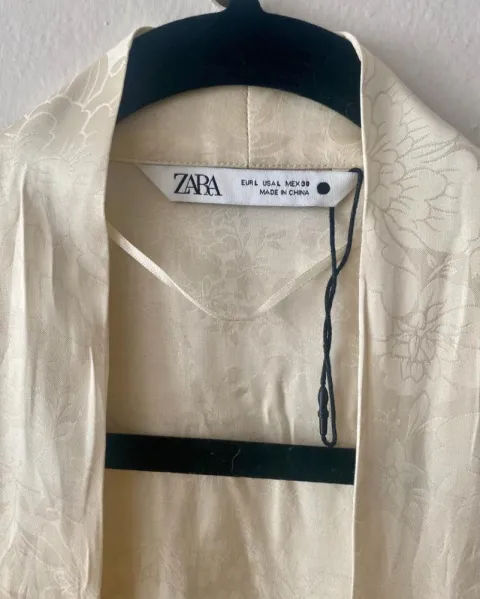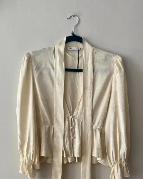 Bonita blusa con escote en V y lazo en el cuello marca Zara, es tipo crop color beige, esta nueva pero sin etiquetas