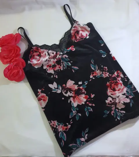 Blusa lencera. Lindo top lencero estampado ajustable. Talla L de terciopelo. Sin detalles. Solo se uso una vez.